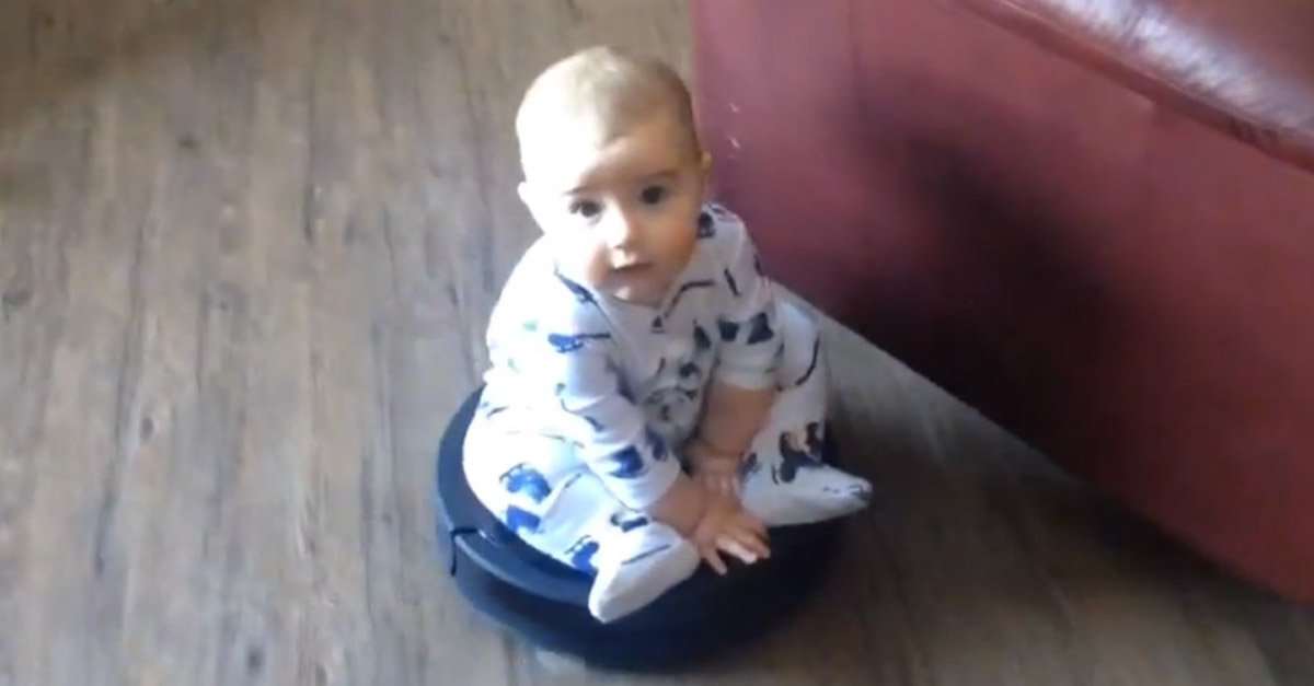 Baby Hilariously Hitches A Ride On A Roomba Vacuum